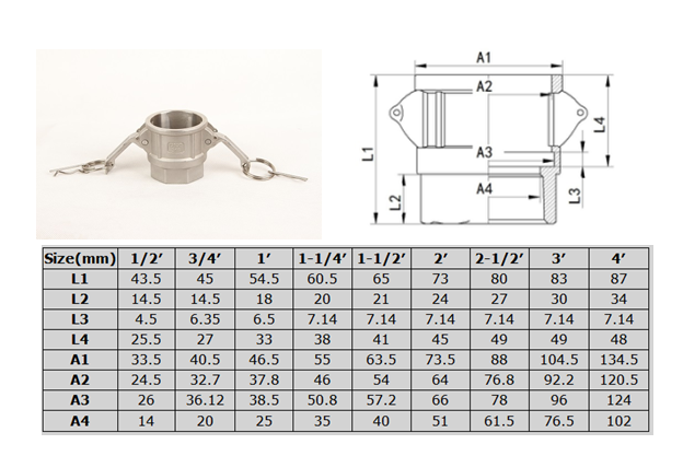 stainless steel 316 304 Camlock : Silver or Golden or black